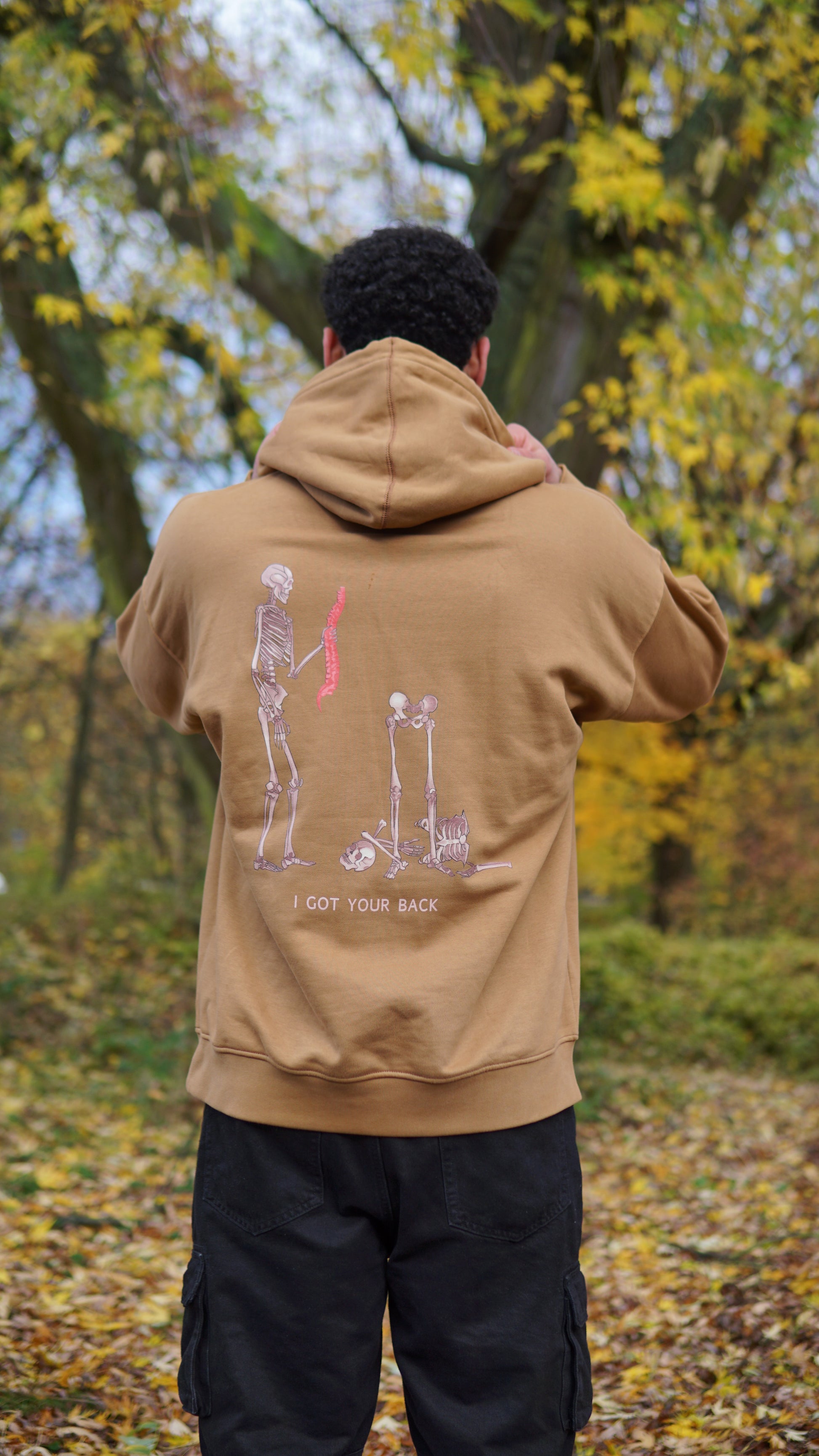 This hoodie features a bold, funny skeleton graphic with the phrase “I GOT YOUR BACK”. The design carries a clever double meaning: one showing unconditional support and the other humorously illustrating the literal act of holding someone’s back.